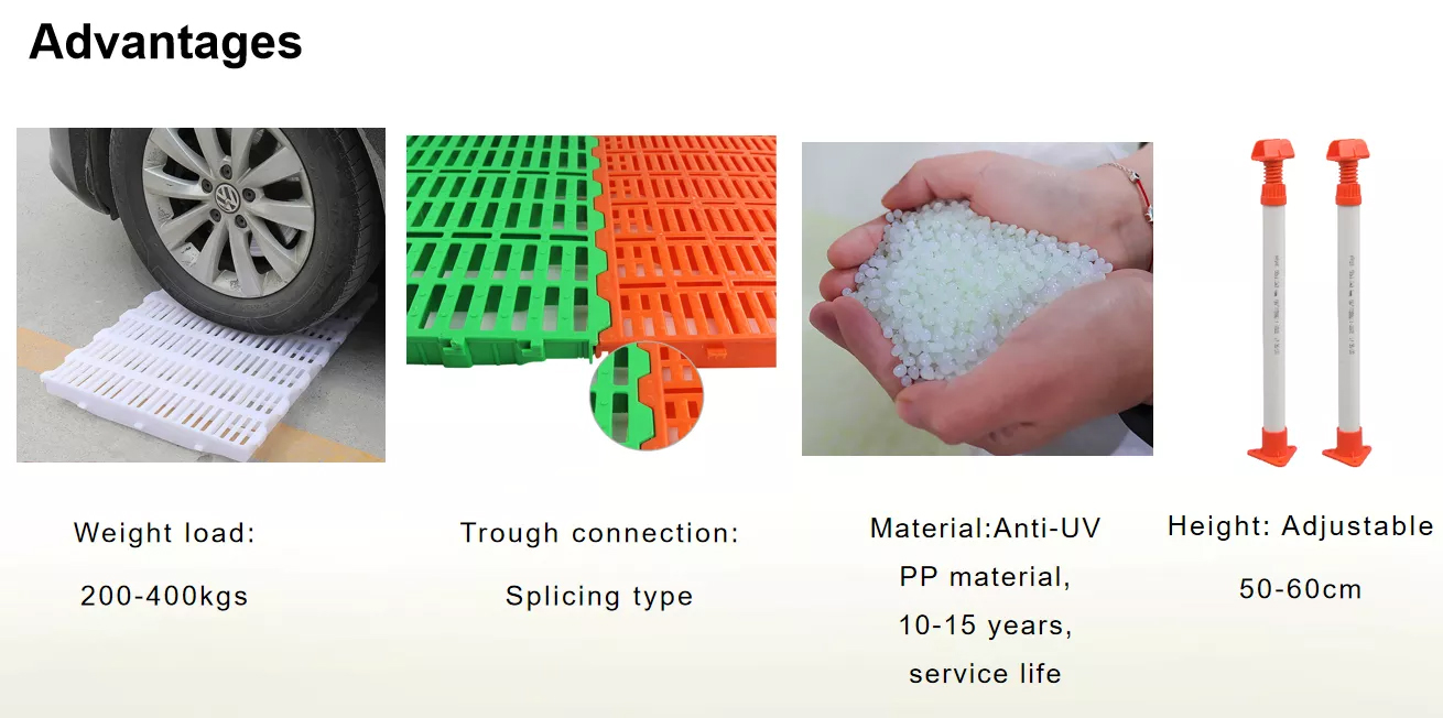 The poultry slat floor plastic floor is suitable for chicken ,duck ,goose ,rabbit and other animals and common used in modern poultry farm.